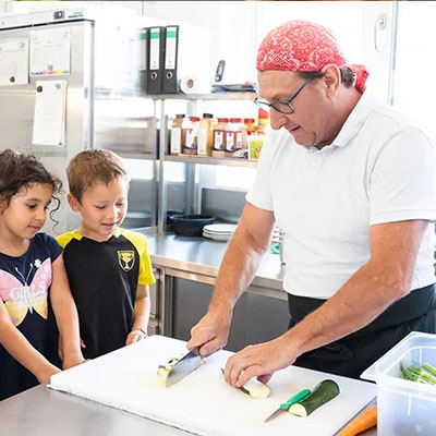 Unsere Küche bereitet täglich frische, saisonale Bio‑Mahlzeiten zu, die Kindern eine ausgewogene und nachhaltige Ernährung ermöglichen.