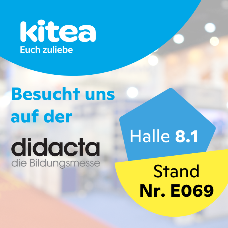 Daher sind wir vom 10. bis 14. März 2026 unter unserer neuen Marke „kitea“ mit einem eigenen Messestand auf der Bildungsmesse didacta in Köln. Das interessiert dich auch? Dann komm für einen Austausch auf Augenhöhe zu uns an den Stand: