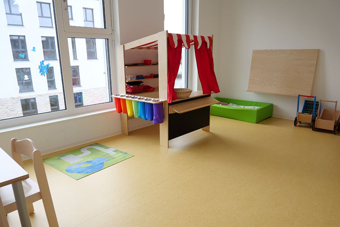 Wir sind eine bilinguale Kindertagesstätte (Deutsch/Englisch) und arbeiten nach dem Immersionsprinzip. Dies bedeutet, dass mindestens ein pädagogischer Mitarbeiter / eine pädagogische Mitarbeiterin ausschließlich Englisch mit den Kindern, Kollegen/Kolleginnen und Eltern spricht. So tauchen die Kinder in ein Sprachbad ein und lernen die Sprache spielerisch, ganz ohne Druck. Unser multiprofessionelles Team sorgt darüber hinaus für abwechslungsreiche Bildungsangebote.