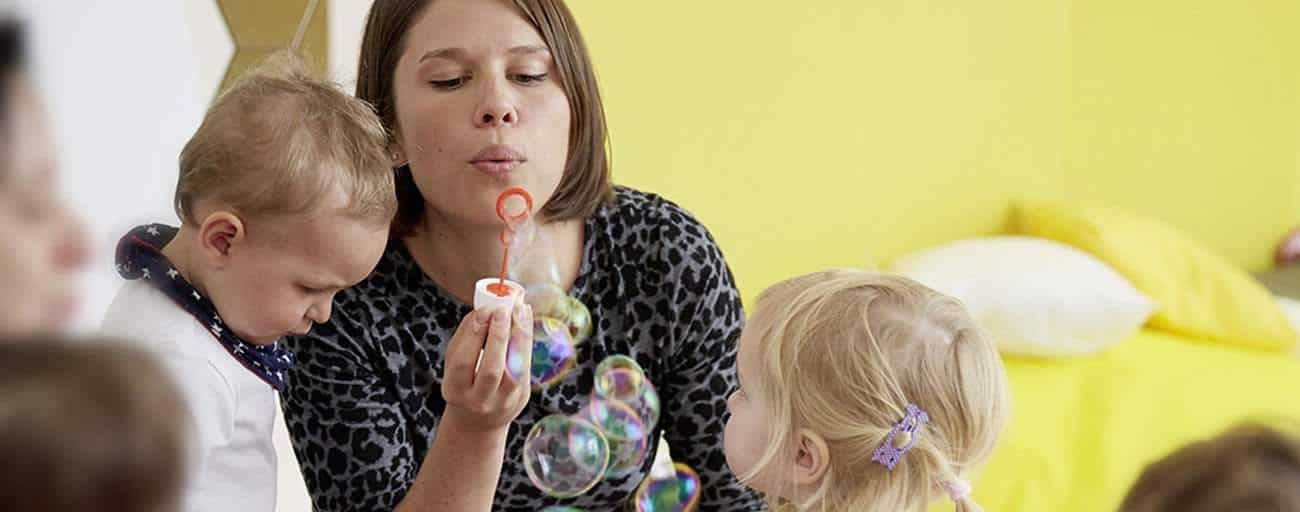 Wir sind eine bilinguale Kindertagesstätte (Deutsch/Englisch) und arbeiten nach dem Immersionsprinzip. Dies bedeutet, dass in jeder Gruppe ein Teammitglied anwesend ist, das ausschließlich Englisch mit den Kindern, Kollegen/Kolleginnen und Eltern spricht. So tauchen die Kinder in ein Sprachbad ein und lernen die Sprache spielerisch, ganz ohne Druck.