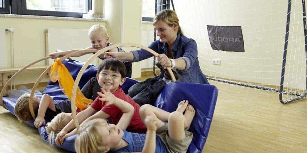 Durch vielfältige Bewegungsimpulse unterstützen wir die motorische Entwicklung und stärken das Körperbewusstsein der Kinder.