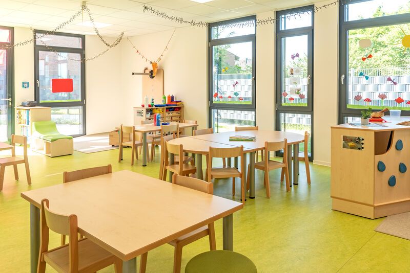 Die Einrichtung verfügt über insgesamt 110 Plätze für Kinder ab 6 Monate bis zur Einschulung.