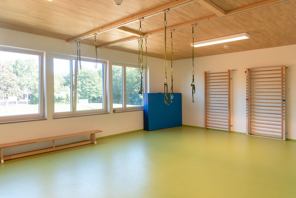 Mit unserer eigenen, gut ausgestatteten Turnhalle schaffen wir Raum für Bewegung, Entdeckung und Entwicklung. So wird Bewegung auf vielfältige Weise Teil des Kita-Alltags – für alle Kinder, unabhängig von ihrem Förderbedarf.