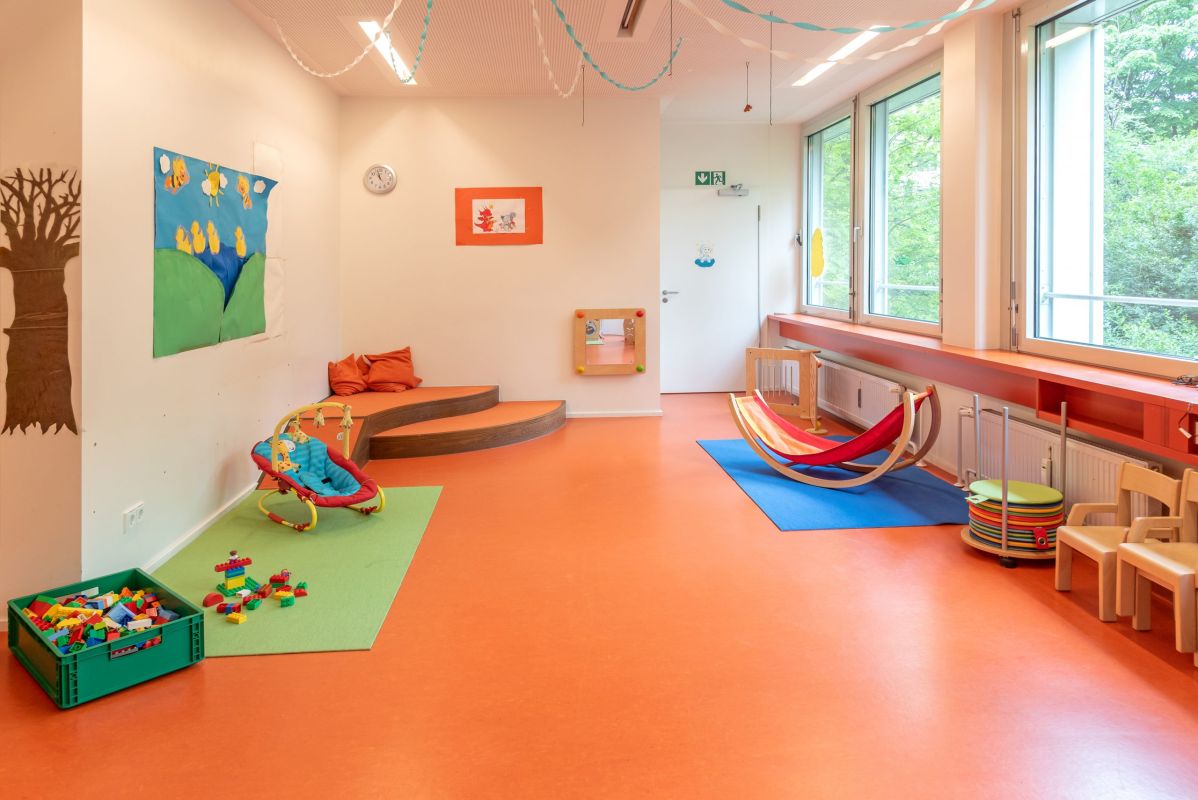 Außerdem verfügt unsere Kita über einen eigenen Turnraum. So wird Bewegung auf vielfältige Weise Teil des Kita-Alltags – für alle Kinder, unabhängig von ihrem Förderbedarf. Zusätzlich können Eltern gegen eine Extragebühr für ihre Kinder Sportunterricht bei einem externen Sportlehrer buchen, der uns zu diesem Zweck einmal wöchentlich in der Kita zur Verfügung steht.