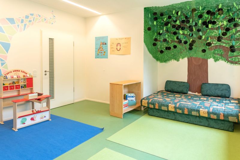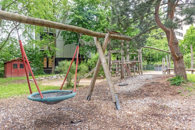 Unsere Kita hat nicht nur helle, moderne Räumlichkeiten, sondern auch einen großzügigen Außenbereich, der Kindern verschiedenen Alters gezielte Bewegungsmöglichkeiten bietet und ihre Entwicklung durch altersgemäße Spiel-, Bewegungs- und Lernangebote in einem sicheren Umfeld fördert.