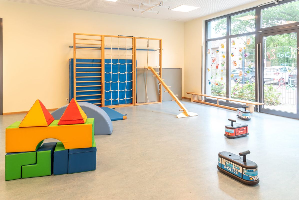 Mit unseren großen, hellen Räumlichkeiten haben wir vielfältige Bildungsorte für dein Kind geschaffen: Sie laden zum Toben, Spielen und Entdecken ein.