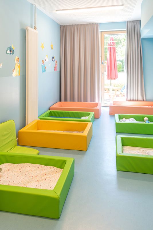 Vier Gruppen mit je 12 Kindern im Alter von 6 Monaten bis 3 Jahren