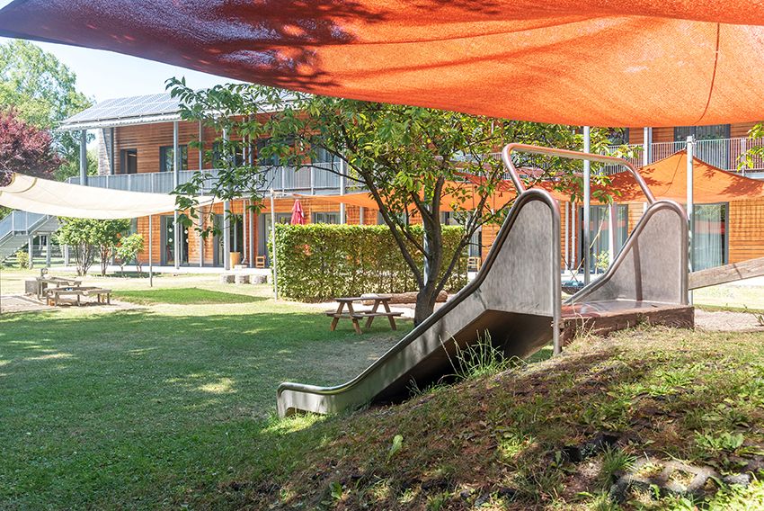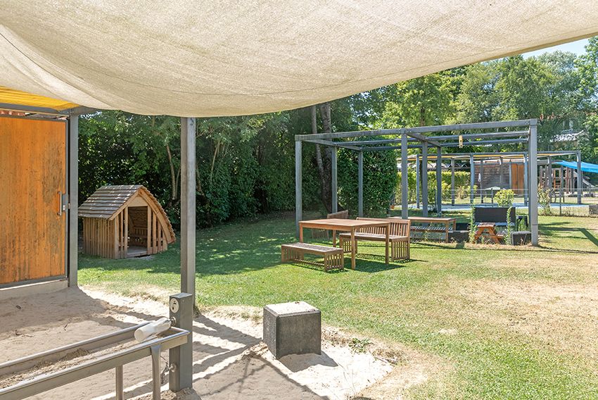 Der großzügige Garten unserer Krippe bietet Kindern verschiedenen Alters gezielte Bewegungsmöglichkeiten und fördert ihre Entwicklung durch altersgemäße Spiel-, Bewegungs- und Lernangebote in einem sicheren Umfeld.