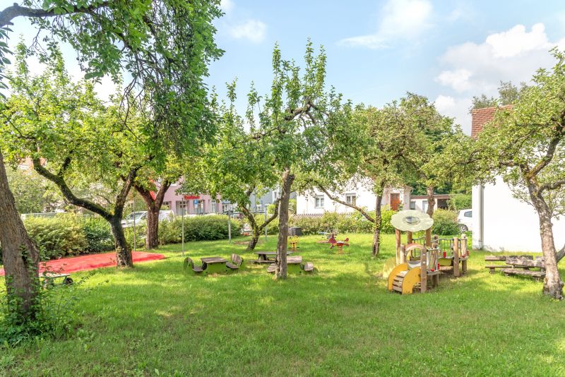 Der weitläufige Garten unserer Kita mit drei großen Hochbeeten für den eigenen Gemüseanbau (auch: Pflege und Ernte) und mit tollem Obstbestand für viele Koch-/Back-Projekte sowie das zusätzliche Außengelände bietet Kindern verschiedenen Alters gezielte Bewegungsmöglichkeiten und fördert ihre Entwicklung durch altersgemäße Spiel-, Bewegungs-, Pflanz- und Lernangebote in einem sicheren Umfeld.